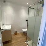 Et sted presenteres med en hårtørrer og en tørretumbler i et privat badeværelse.